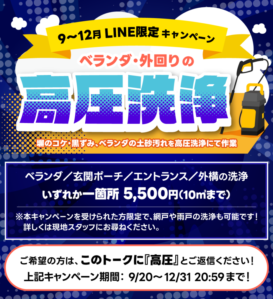 『ベランダ・外回りの高圧洗浄』を格安価格にて実施中です!