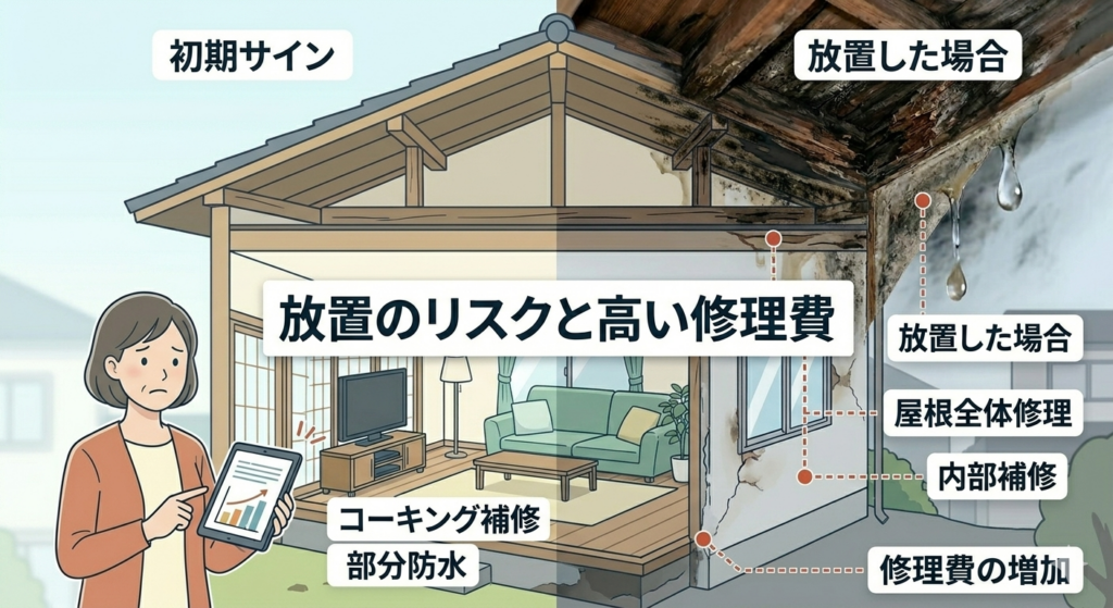 👉 初期の雨漏りサインの可能性あり
